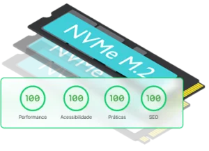 Servidores com tecnologia LiteSpeed e discos NVMe M.2 entregam até 10x mais velocidade, garantindo notas 100 em Performance, SEO, Acessibilidade e Boas Práticas no Google.